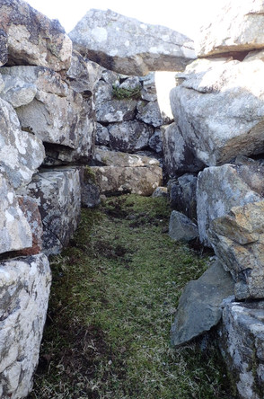 At Punds Water there are 2 Neolithic sites (over 4000 years old) – the first is possibly a homestead and this large (10m diameter) structure has 5 internal compartments visible. Further on, the second is the largest remains of a heel-shaped burial cairn on Mainland Shetland – generally knee to waist-high with a façade about 20 m wide, you can still see the roofless chamber. It's always amazing to imagine life here 4000 years ago. From the cairn, head south-east to a new mobile phone mast and then drop down to the houses at Mangaster to re-join the road.
